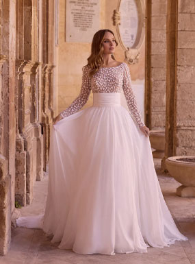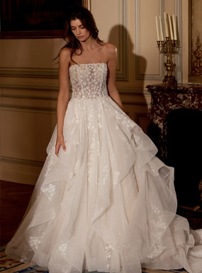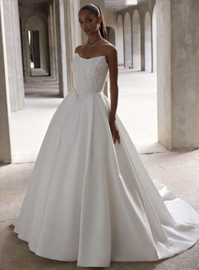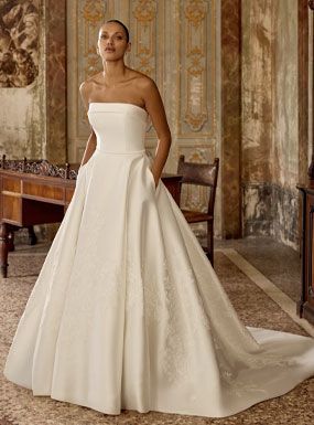 Crafted using couture techniques and quality fabric, Ronald Joyce gowns are known for their perfectly structured bodices, which create the most flattering shape for any bride. Their wedding dresses come in a diverse range of styles, shapes, fabrics and colours so any bride can reflect her own individual style.