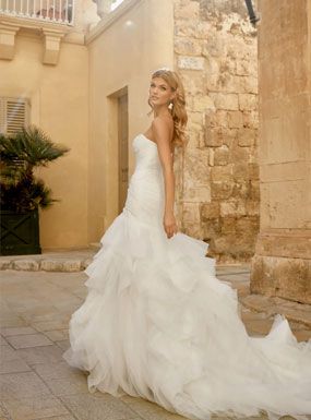 Consider the venue and style of your wedding too – for example if you’re getting married on a beach something strapless and floaty would be better, as you want to make sure you’re as comfortable as possible on your big day. If your venue has lots of steps, a tight fishtail dress might be too restrictive.