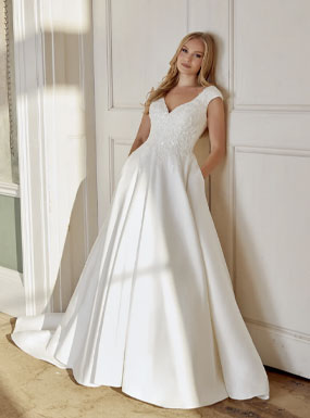 Crafted using couture techniques and quality fabric, Ronald Joyce gowns are known for their perfectly structured bodices, which create the most flattering shape for any bride. Their wedding dresses come in a diverse range of styles, shapes, fabrics and colours so any bride can reflect her own individual style.